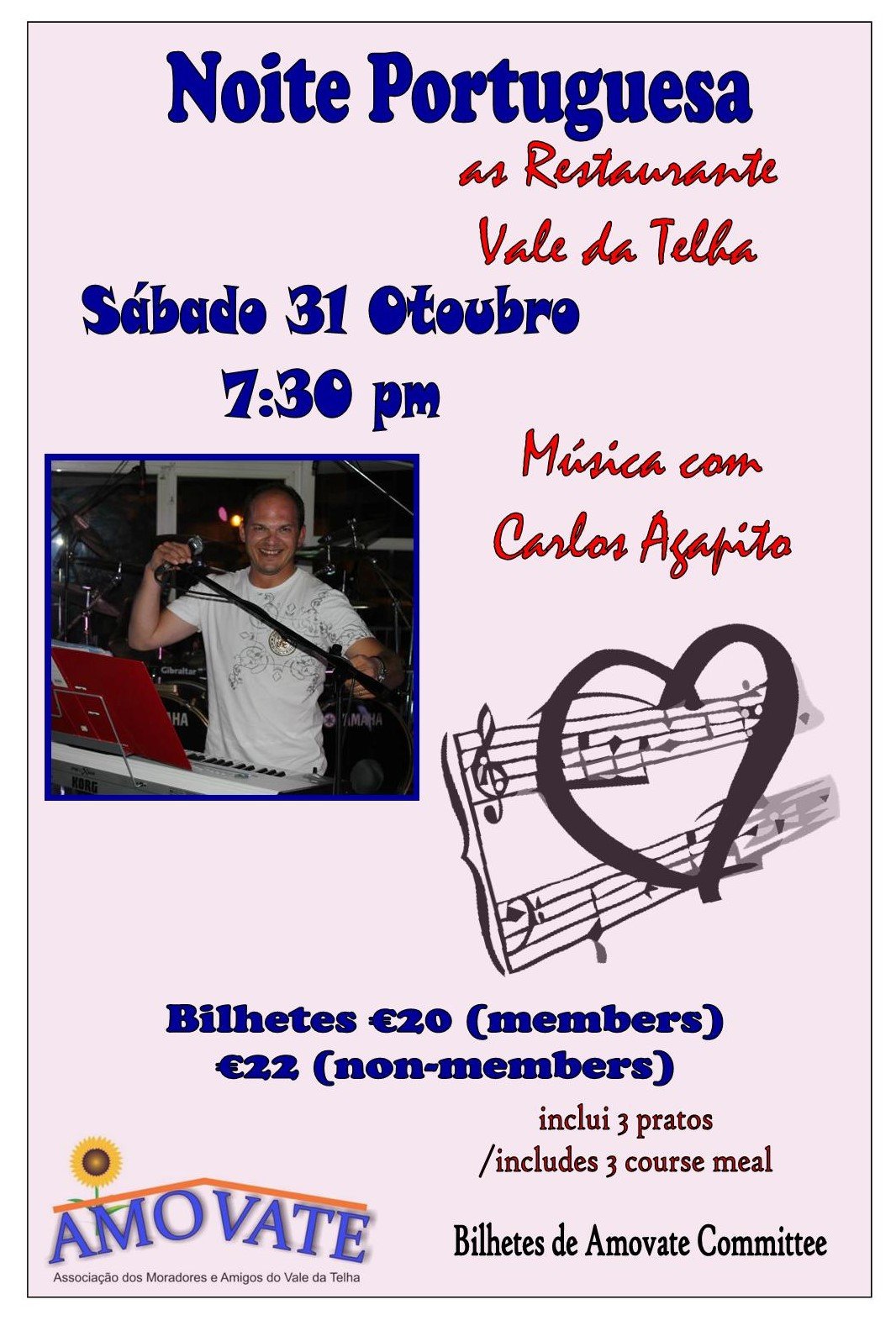 Once again Amovate stages it’s Portuguese night at José’s Restaurant, the Menu is as follows: