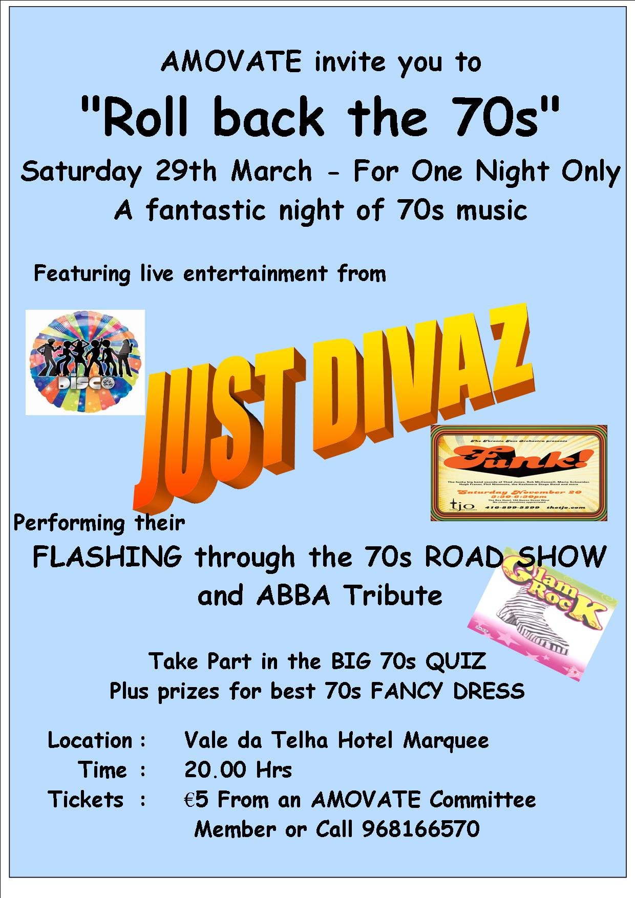 It was a funky time, a fun time and we’re hoping to recreate the musical mood of the 70s with a 1970s road show, featuring live music with Singing Duo “Just Divaz” and an ABBA tribute sandwiched somewhere in between.