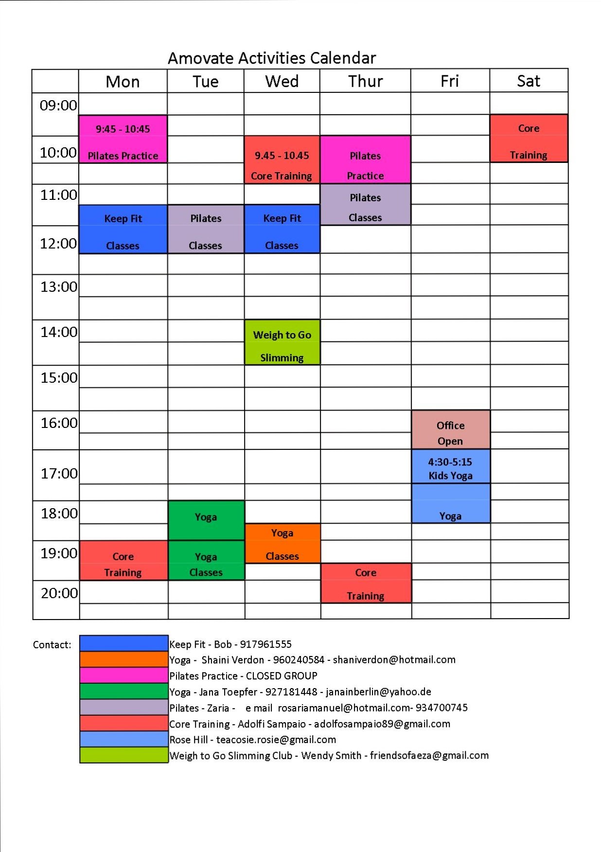 Activities Calendar
