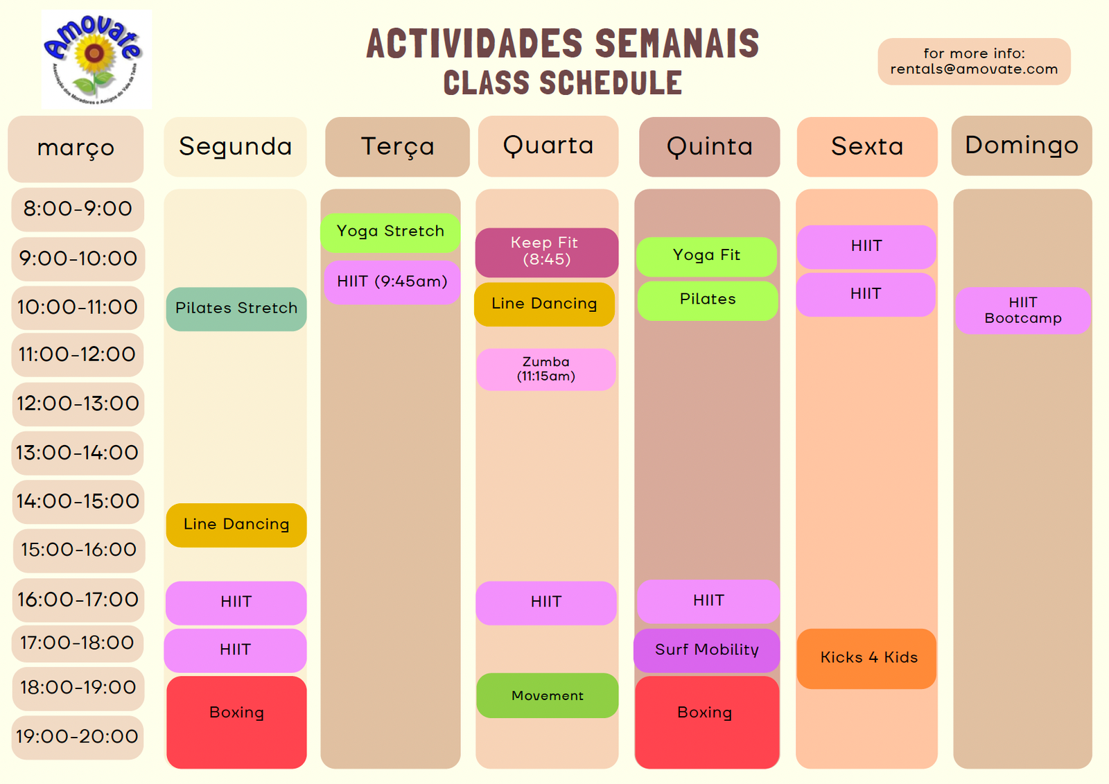 If you are interested in renting the hall for weekly classes. Please contact us at rentals@amovate.com for more information.