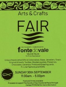 The previous three here in Vale da Telha were so well received by residents and visitors that the region’s talented artists and artisans are returning for a fourth Fair on Sunday, September 30th at the Restaurante Fonte do Vale.