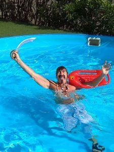 Cormac Murphy the Sultan, who never disappoints, became the ‘Sultan of Swim’ when he pulled off a “Tom Daly” into the pool at the Arrifana Youth Hostel.