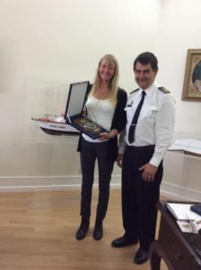 Cath, accompanied by close friend Faith Quinton, travelled to Lisbon for the presentation ceremony where she was met by Commander Paulo Tomás de Sousa e Costa, Director of the Instituto de Socorros a Náufragos, and First Lieutenant Michael Barradas dos Santos, Chief of the Maritime Rescue of the Instituto de Socorros a Náufragos.