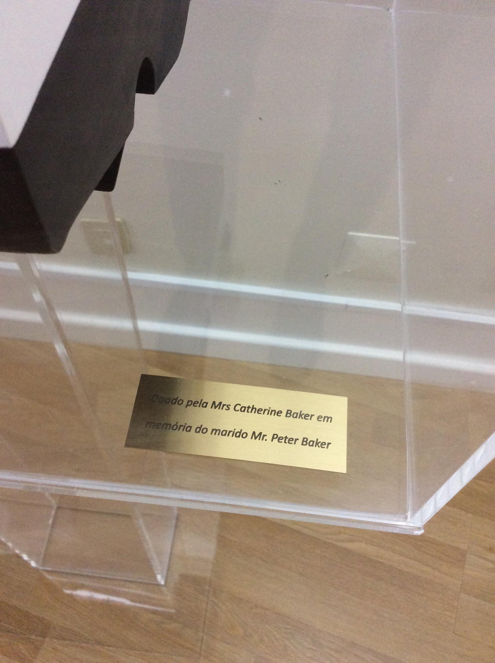 The model, made by João Marques, was presented in a display case bearing a brass plate reading: “Presented by Mrs Catherine Baker in memory of her husband Mr Peter Baker”.