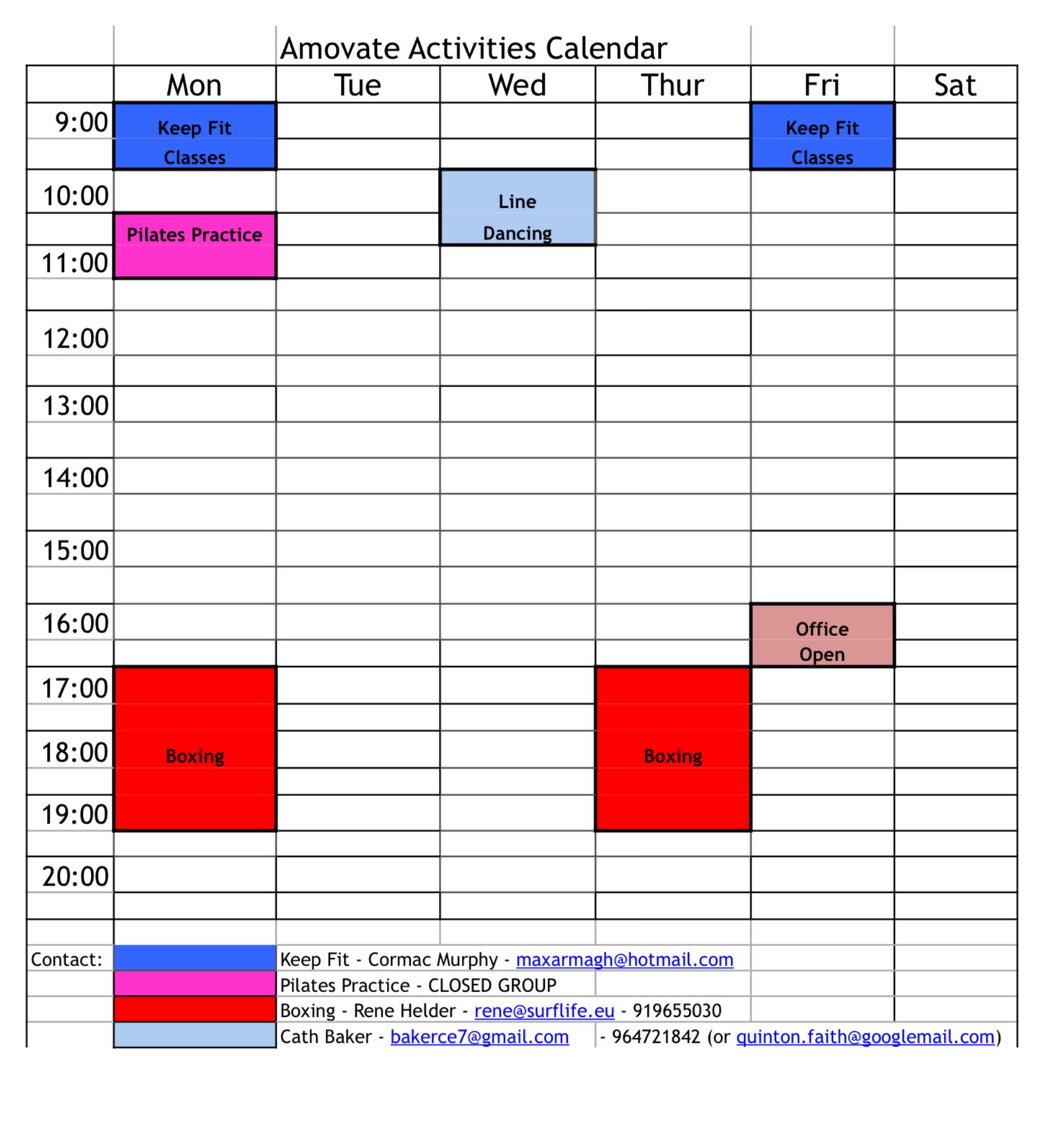 Activities Calendar