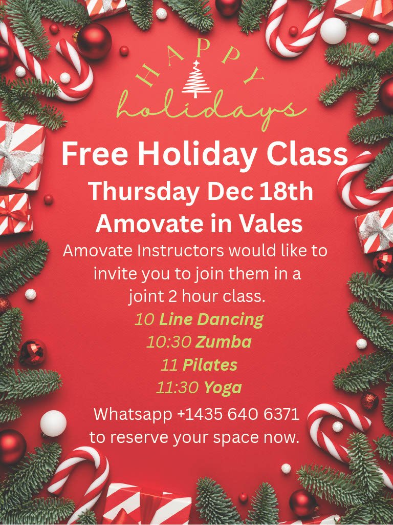Click here for current class schedule and more information on Amovate classes. https://amovate.com/activitiescalendar/